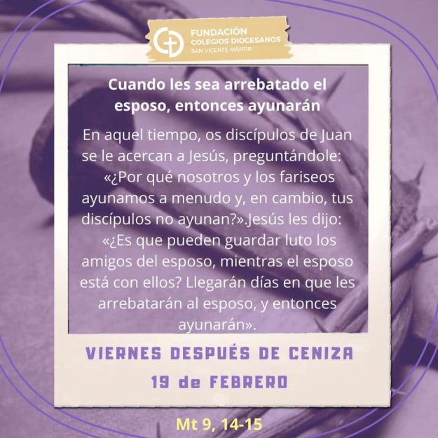 Os dejamos la reflexión del evangelio de hoy viernes después de ceniza. #colegiosdiocesanos #mariainmaculada #yoteheelegidohoy