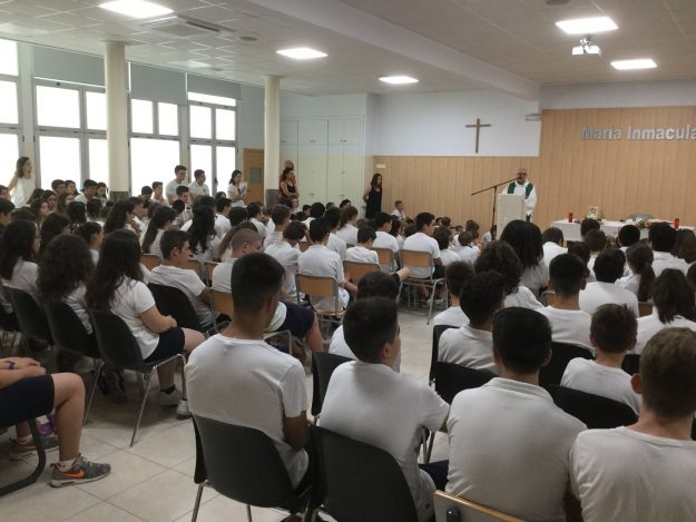 DetallesD. Ernesto, celebró el pasado viernes la Eucaristía que sirvió para despedir el curso, a los alumnos de secundaria y a las jubiladas de este año, Mª Ángeles Caraballo y Marisen…